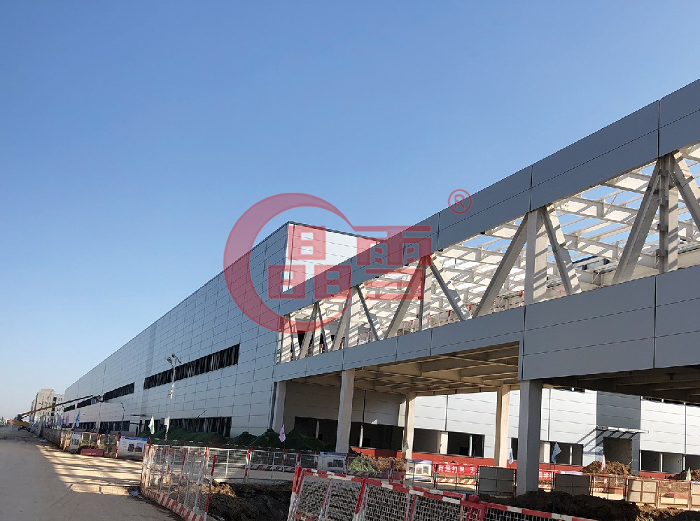 項(xiàng)目位于蘇州市相城區(qū)渭塘鎮(zhèn),占地面積33000m’,是上海菲格瑞特汽車科技股份有限公司的全資子公司。項(xiàng)目采用豎裝形式,使用75mm巖棉夾芯板,板材用量達(dá)8700㎡。